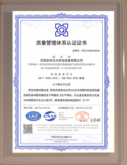 石家莊市光大機(jī)電設(shè)備有限公司位于石家莊市新能源和智能制造園區(qū)光大路2號(hào),緊鄰107國(guó)道,交通便利。公司匯聚了一批鈑金、強(qiáng)電、弱電技術(shù)、安裝施工人員,并有河北科技大學(xué)、石家莊大學(xué)等高校的技術(shù)支持與協(xié)作,擁有全系列的剪、折、沖、焊、安、檢等先進(jìn)的生產(chǎn)和檢測(cè)設(shè)備,嚴(yán)格執(zhí)行已順利通過(guò)的國(guó)家強(qiáng)制3C和ISO9001質(zhì)量標(biāo)準(zhǔn)和規(guī)范。...